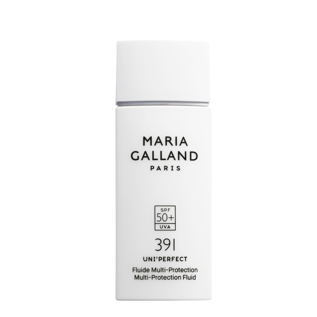 Um die Schönheit und Jugendlichkeit der Haut langfristig zu bewahren, hat Maria Galland Paris 391 Fluide Multi-Protection Uni´Perfection SPF 50 entwickelt. Der perfekte Abschluss für Ihr Pflegeritual. Seine intelligenten Aktivstoffe bieten einen vielseitigen Schutz in Kombination mit einer hautperfektionierenden Wirkung. Die Haut wird durch den Photo- ProtectMG Komplex geschützt, Pigmentflecken werden durch Vitamin B3 reduziert und der Teint erscheint ebenmäßig durch einen weißen Pfingstrosenextrakt.