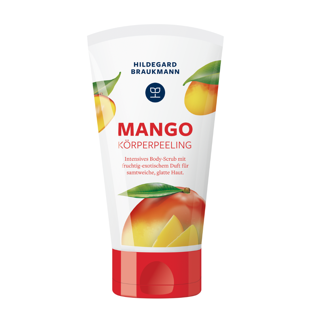 Intensives Body-Scrub mit fruchtig-exotischem Duft für samtweiche, glatte Haut. Schenkt ein geschmeidiges, frisches und vitales Hautgefühl. Peelingperlen aus mineralischem Vulkangestein entfernen überschüssige Hautschüppchen und regen durch ihre Massagewirkung die Durchblutung der Haut wohltuend an. Der Extrakt aus reifen Mangofrüchten hat feuchtigkeitsspendende und antioxidative Eigenschaften. Mangobutter und Traubenkernöl pflegen und schützen die Haut. Die Haut wird aufnahmefähiger für die anschließende Pflegeroutine. Ohne Mikroplastik.
